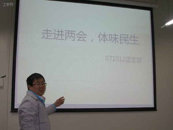 本次活动以观看温家宝总理的政府工作报告拉开序幕,之后同学们对此积极展开讨论,纷纷走上去发表自己对“两会”认识。最后班主任王贵岭教授结合两会精神和当前中国国情,就同学们关注的就业等问题做了简短的发言。