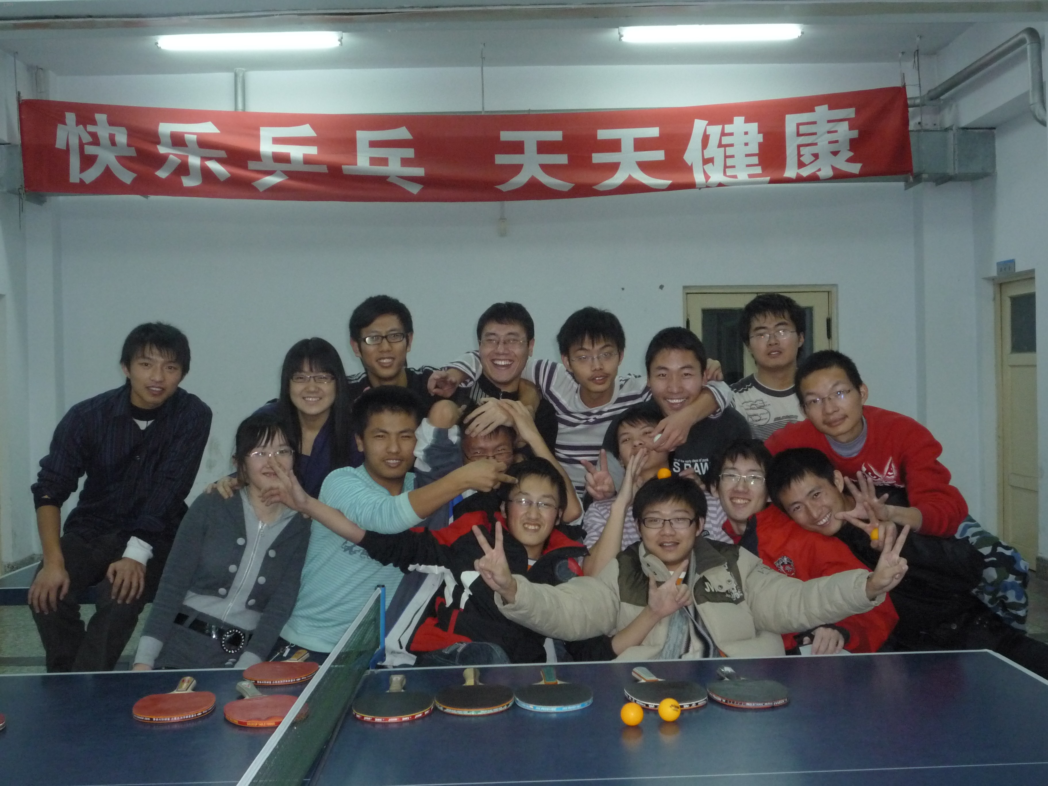 为促进班级交流,缓解学习压力,081011班于18日晚在校乒乓球馆组织了一次题为“快乐乒乓”的主题班活。