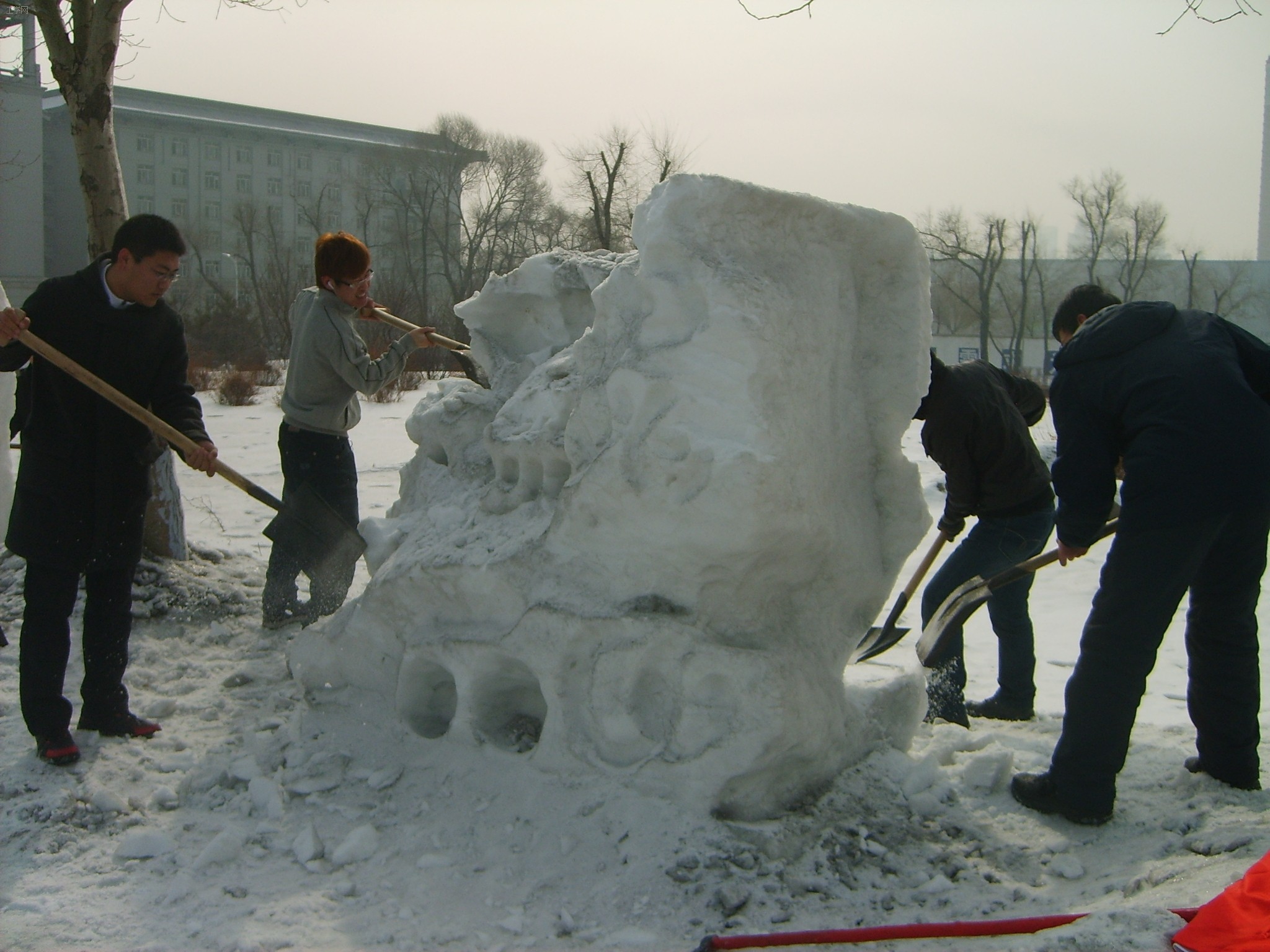 由于气温回升,校雪雕比赛中遗留的部分雪雕开始融化,给学生出行带来不便,为此,我院服务队组织学生对部分雪雕进行定点清除。此次清理活动,在为同学们带来方便的同时,也亮化了校园风景。