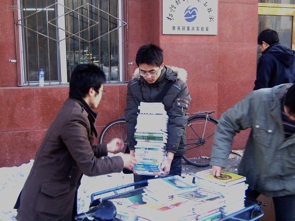 由于捐赠物品较多,服务队员们借来了三轮车来运送。虽天寒地冻,道路泥泞,但他们越发精神,几次搬运后,将物品全部交到爱心书屋。服务队队长说:“这样的活动以后还会常做,也希望同学们都能行动起来,将爱心奉献给社会。”