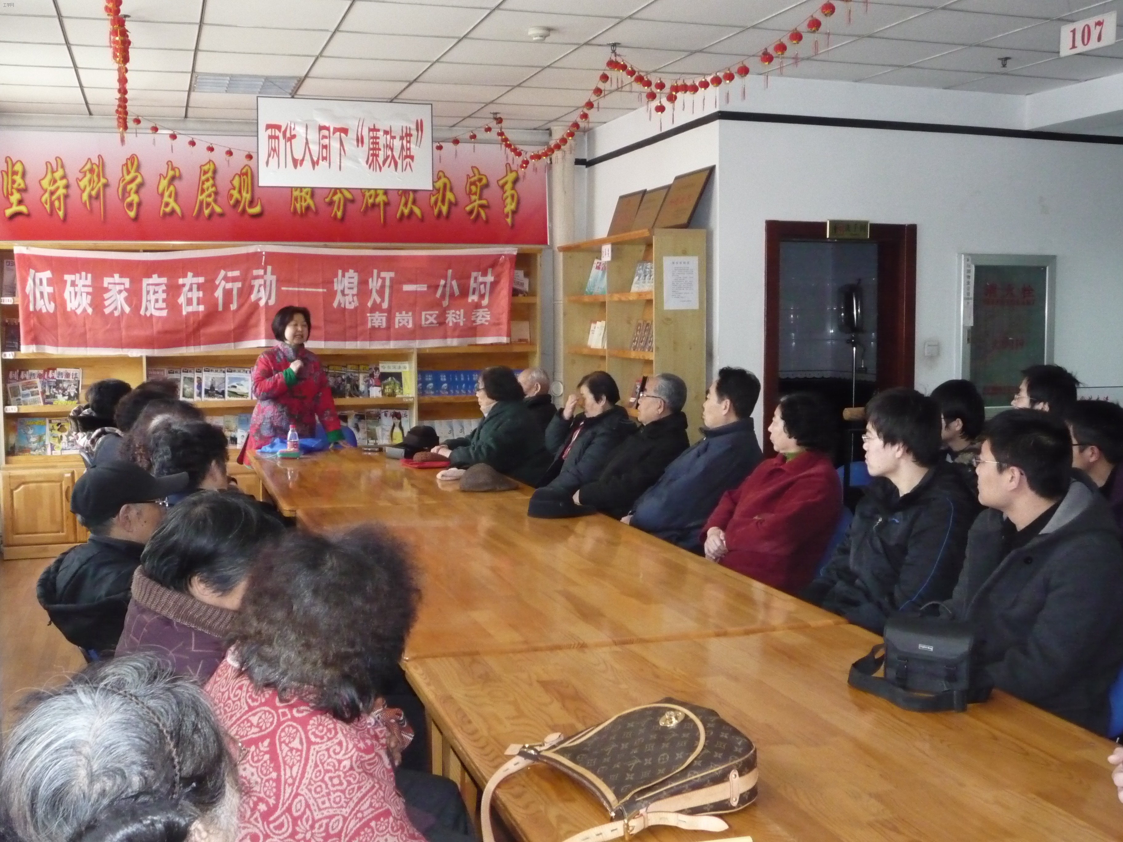上午900,活动准时开始,哈尔滨绿大地环保科技开发有限公司董事长、绿色中国消费联盟主席孙丽萍老师,为在座志愿者讲解低碳生活和环境保护的相关知识。据悉,为倡导此次低碳行动,文化家园社区居委会将于今晚830930组织居民进行熄灯一小时活动。