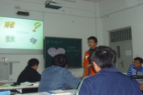 首先,同学们描述了自己对大学四年生涯的规划。然后,同学们又就“毕业后,先考研还是先就业”展开了激烈的讨论。