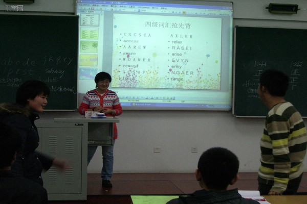 来自09级的两位学长向大家讲解了四级考试中的技巧以及注意事项,通时同学们也积极的向两位学长询问了相关的问题。交流结束后团支书又组织了“四级单词抢先背”的小游戏,使同学们在游戏中记住了不少四级重点词汇。
