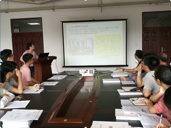 为了加强基层组织建设,增强基层党组织的凝聚力和战斗力,2017年6月21日下午,材化学院党总支“主题党日活动”立项结题汇报在基础楼315教室成功举行。材化学院党委书记靳雪滨主持会议,材化学院所有教工党支部和学生党支部参与了此次汇报。