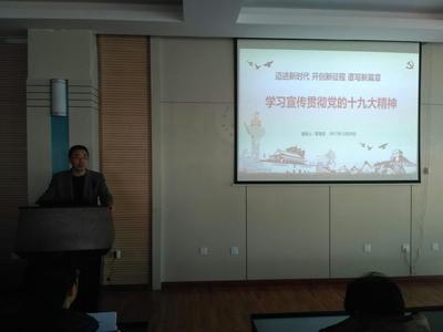 首先,靳雪滨就充分认识学习宣传贯彻党的十九大精神的重要意义和全面准确学习领会党的十九大精神两方面讲解了十九大报告的丰富内容和精神实质,并指出学习宣传贯彻党的十九大精神是当前和今后一个时期学院各级党组织一项十分重要的政治任务,学院各级党组织和全体党员要在学懂、弄通、做实上下功夫。他指出,党的十九大是在我国全面建成小康社会决胜阶段、中国特色社会主义进入新时代的关键时期召开的一次十分重要的大会。大会高举中国特色社会主义伟大旗帜,回顾总结了过去五年的工作和历史性变革,作出了中国特色社会主义进入新时代、我国社会主要矛盾已经转化为人民日益增长的美好生活需要和不平衡不充分的发展之间的矛盾等重大政治论断,深刻阐述了新时代中国共产党的历史使命,确立了习近平新时代中国特色社会主义思想的历史地位,提出了新时代坚持和发展中国特色社会主义的基本方略,确定了决胜全面建成小康社会、开启全面建设社会主义现代化国家新征程的目标,对新时代推进中国特色社会主义伟大事业和党的建设新的伟大工程作出了全面部署,在党和国家发展史上具有划时代的里程碑意义。