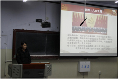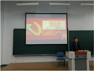 在经过认真研读报告、集中学习探讨、主题凝练、课件制作等备课阶段后,12月中旬起,宣讲团开始面向全院学生开展宣讲活动。成员们主要围绕十九大的重大意义、主题,以及十九大提出的许多新理论、新论断,确定的新举措、新任务等内容分别从不同的视角展开了宣讲。为了能够达到听得懂、能贯彻的效果,各宣讲团成员结合自身的专业背景以及亲身经历就如何将十九大精神真正融入到实际生活中的问题做了详尽的讲解。