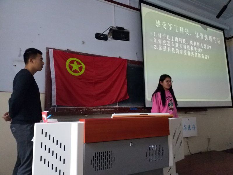 本次团日活动围绕“感受军工科技,体验创新生活”展开,王若宇向学生们介绍了中国当今军工科技的水平,强调了军工科技在科技发展中的优先地位,以航母、大型驱逐舰为例向学生们介绍了中国先进的武器装备以及隐身材料。结合未来学生们的生活需求,向学生们科普了可燃冰等新能源及一系列为生活带来便利的新材料。活动末,学生们踊跃发言,现场气氛热烈。