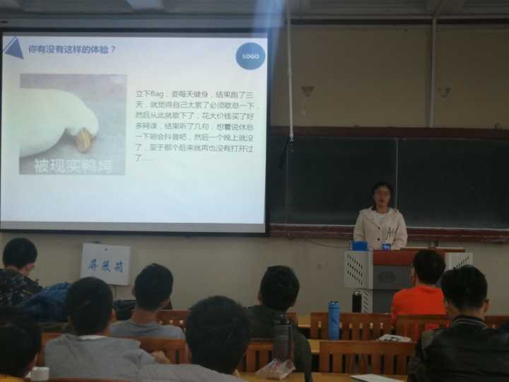 在活动开始,李佳奇给同学们播放了一段视频,引出本次的团活主题,同时让同学们思考自己曾经的flag倒下的原因,然后,李佳奇分析同学们的目标没有实现是由于自身没有自控力的表现,通过一些漫画给大家讲述了提高自控力的方法,激励同学们去提高自己的自控力。最后,李佳奇带领同学们一起建立自己未来一个月的flag,并鼓励同学们一起坚持,不让flag倒下。同学们认真听取,并积极回答问题。