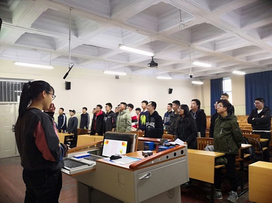 例行奏唱团歌之后,张文佳先为大家简要介绍本次活动主题含义与其包含思想。接下来张文佳对同学们提问其对东北振兴的理解,让大家认识现在东北振兴的现状。随后配合幻灯片讲解东北地区曾经的辉煌岁月以及之后的逐渐没落。紧接着通过观看习近平总书记在东北三省主持召开的推进东北振兴座谈会视频来了解现在东北发展新机遇。最后,组织同学们写下对推进东北振兴的建议和希望并抽取几位同学读出自己写下内容,让同学们学习并交流心得,活动结束。