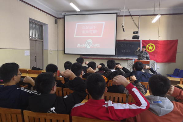 4月13日上午9时55分,20181054团支部在11号楼124教室开展主题为“青年心向党,建功新参与到时代”四月团日活动。此次活动由团支书张文佳主持,团支部全体成员共同参与。