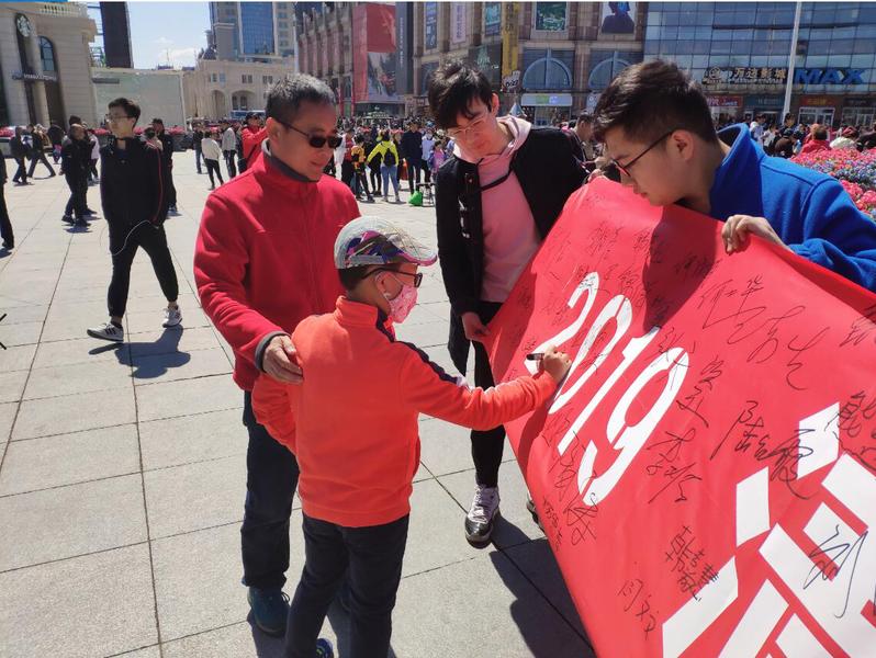 为了培养小学生的责任心,同时提醒人们中国水资源严重短缺的现状以及唤醒人们清洁节水的理念,哈尔滨工程Best365官网团委金手指志愿服务队于5月1日在防洪纪念塔下举行“清洁节水中国行,一家一年一万升“的签名活动。