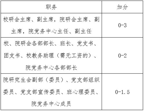 注:①学生干部按平时工作态度及工作量由辅导员综合各方面情况酌情给分;②担任多项职务可取最高分。