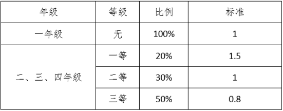 三年级依照第二学年评定结果确定。