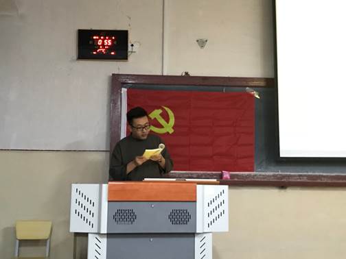 王志成同志说到:作为年轻人,就应该多奋斗,像现在研一的有课,就应该好好学习,把专业知识牢牢把握住,平时还应该多做实验,理论实践相结合,更应该在课余时间多学习党的理论知识,把国家发展的任务扛在自己的肩上。