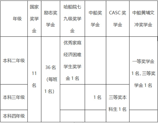 3、哈船院七九级奖学金:优秀家庭经济困难学生奖学金奖励对象为本科二年级学习成绩较为突出的家庭经济困难学生。
