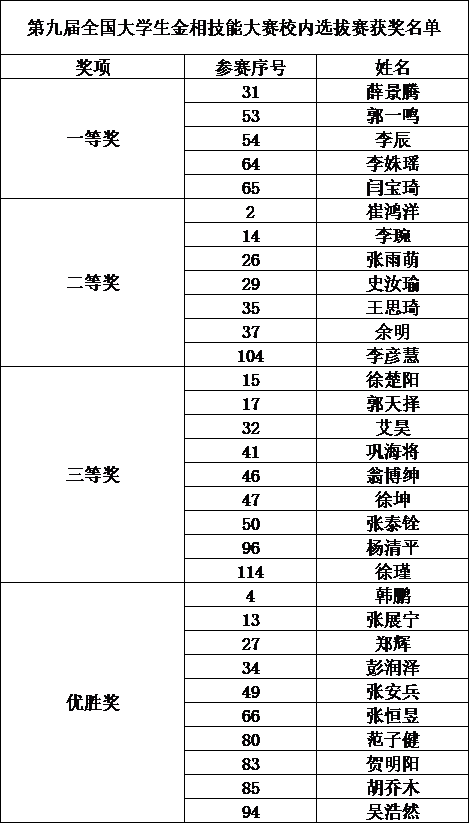 第九届金相技能大赛校内选拔赛于2020年9月27日在基础楼034室举办。经过评委老师审核,现将本次比赛获奖名单公示: