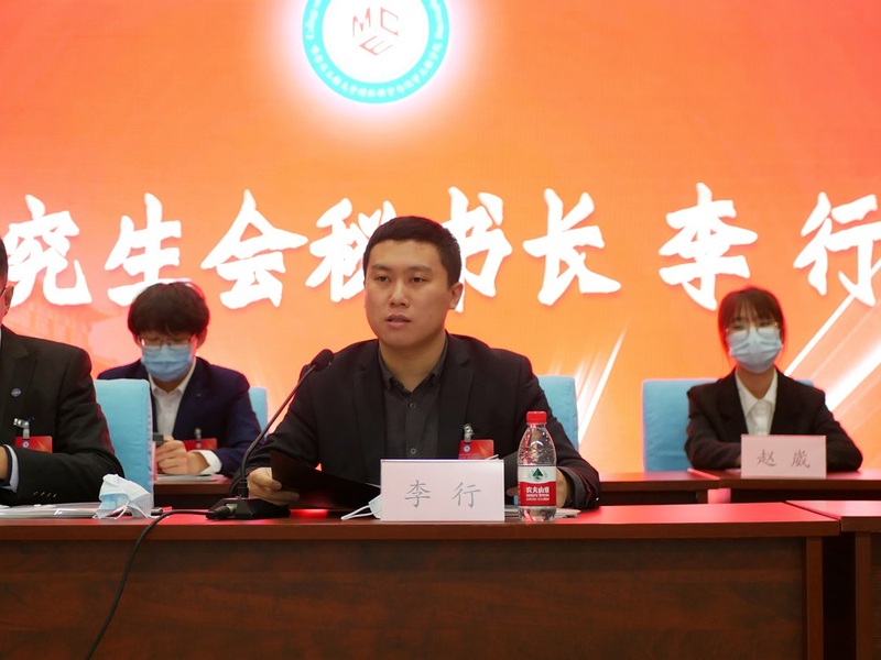 研究生会委员会秘书长李行讲话,向各位新当选的委员和主席团成员表示热烈的祝贺,向各位委员和主席团成员提出三点希望: