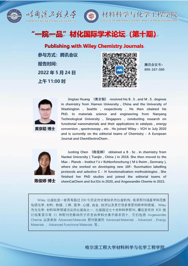 “一院一品”材化国际学术论坛(第十期)
