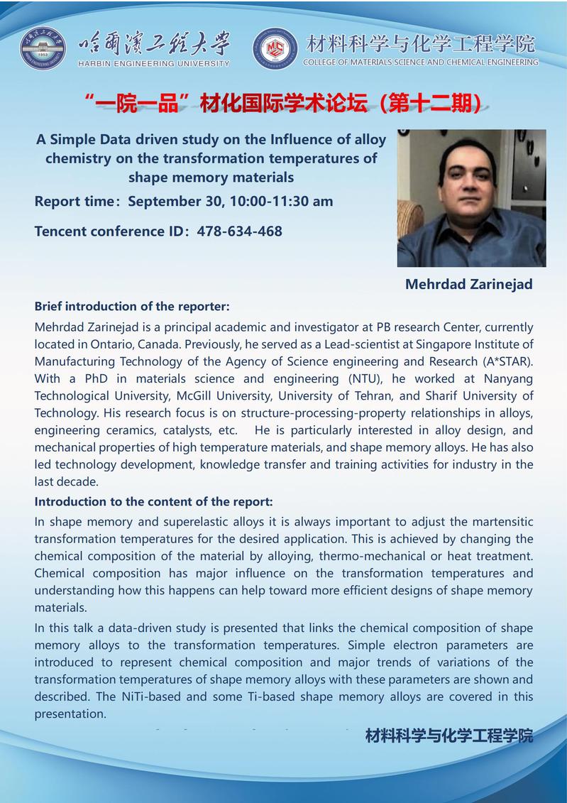 “一院一品”材化国际学术论坛(第十二期)