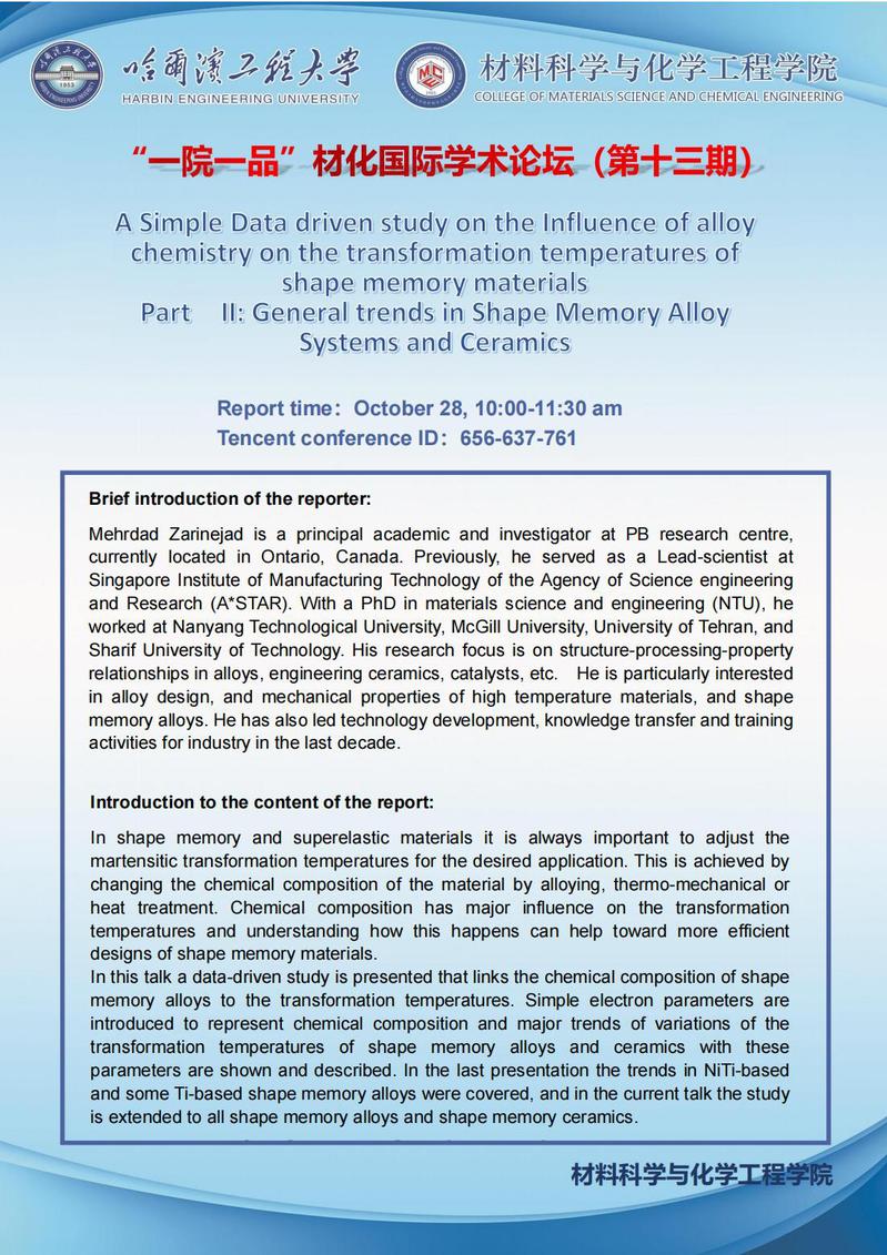 “一院一品”材化国际学术论坛(第十三期)