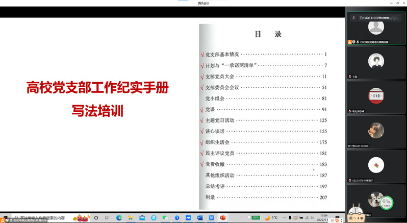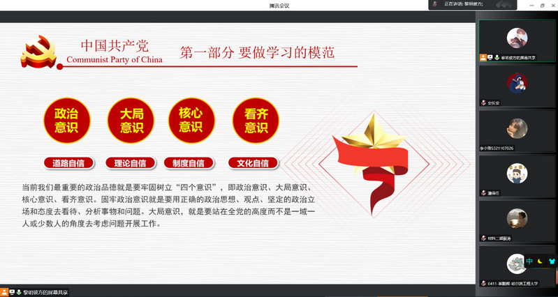 本次培训以线上集中授课的方式开展,刘菊蓉以《黑龙江省普通高等学校发展党员工作规程(试行)》有关参考模板和《高校党支部工作纪实手册》为依托,紧扣当前学院党支部工作的实际,针对如何更好地做好学生党员发展工作、开展“三会一课”等问题进行深入交流,要求参会人员不忘初心,以发展党员的新十六字方针“控制总量、优化结构、提高质量、发挥作用”为导向,以提高发展党员质量,保持党的先进性和纯洁性为核心开展工作。闵译萱针对“如何更好地发挥党员先锋模范作用及党日活动的开展”这一主题,为与会的所有学生党员干部开展了一次生动的党课学习。他强调作为党员一定要做学习的模范,要做克己奉公、无私奉献的模范,要做服从组织、严守纪律的模范。本次培训突出了新时代党建工作的新要求,具有很强的理论性、针对性和操作性。