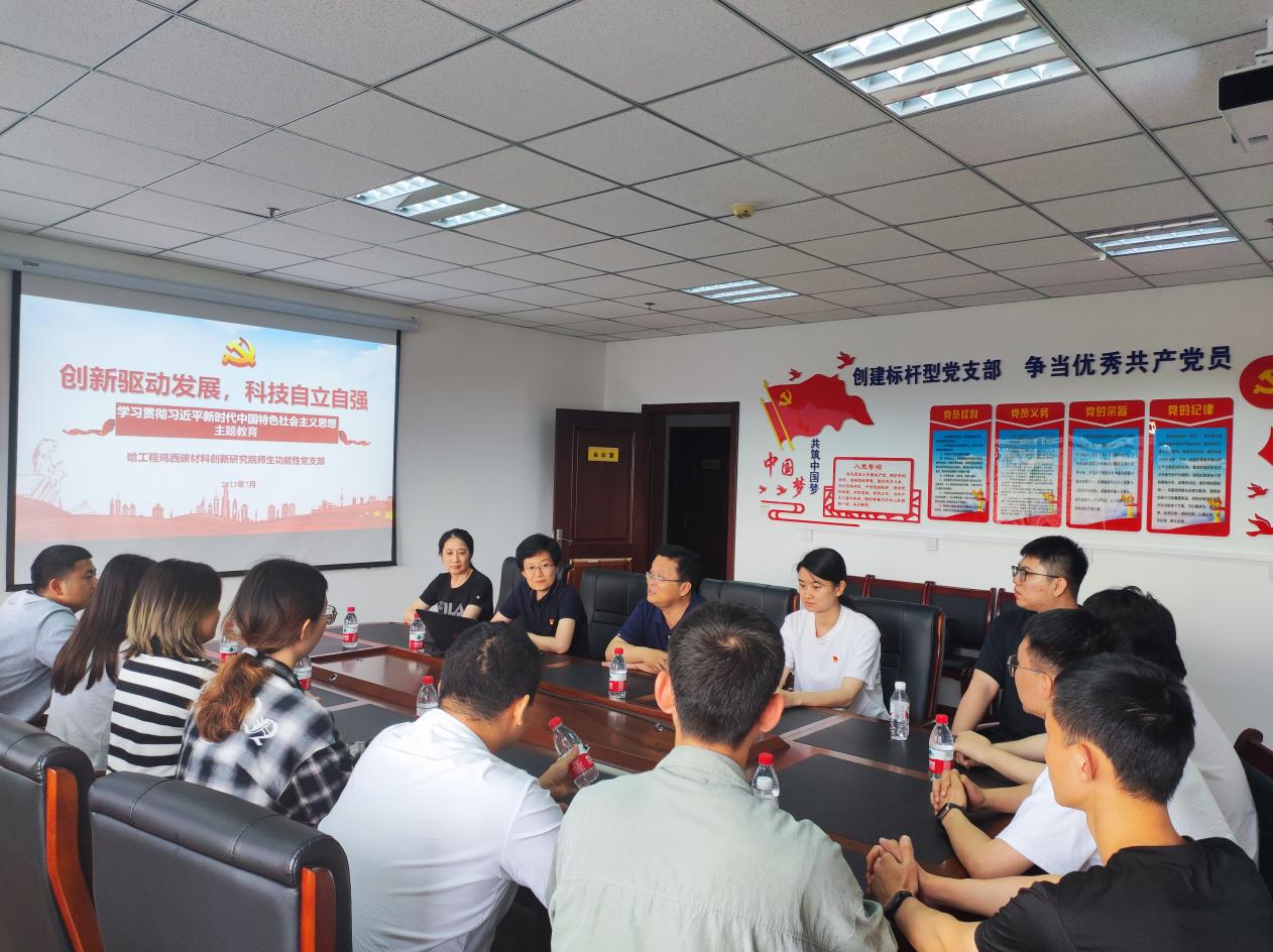 同日,哈工程鸡西碳材料创新研究院功能型党支部师生召开以“创新驱动发展,科技自立自强”为题的主题教育会议,共同学习习近平新时代中国特色社会主义思想,共同庆祝党的生日。功能型党支部围绕“红色教育凝心铸魂、党建联建双融双促”逐步实施党建创新,以高质量党建促进高质量发展。