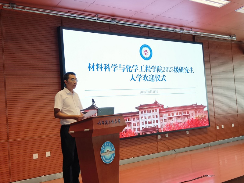 Best365官网2023级研究生入学欢迎仪式于8月31日下午14:00在启航活动中心学术报告厅举行。材化学院院长杨飘萍,党委书记王秦辉,党委副书记刘立静,副院长李峻青,副院长贺飞,特邀嘉宾、学院2000级校友、双登集团股份有限公司副总裁钟义华及学院综合办、教务办、学工办主要负责人,2023级研究生参加仪式,2023级硕士研究生辅导员阿里木江主持仪式。