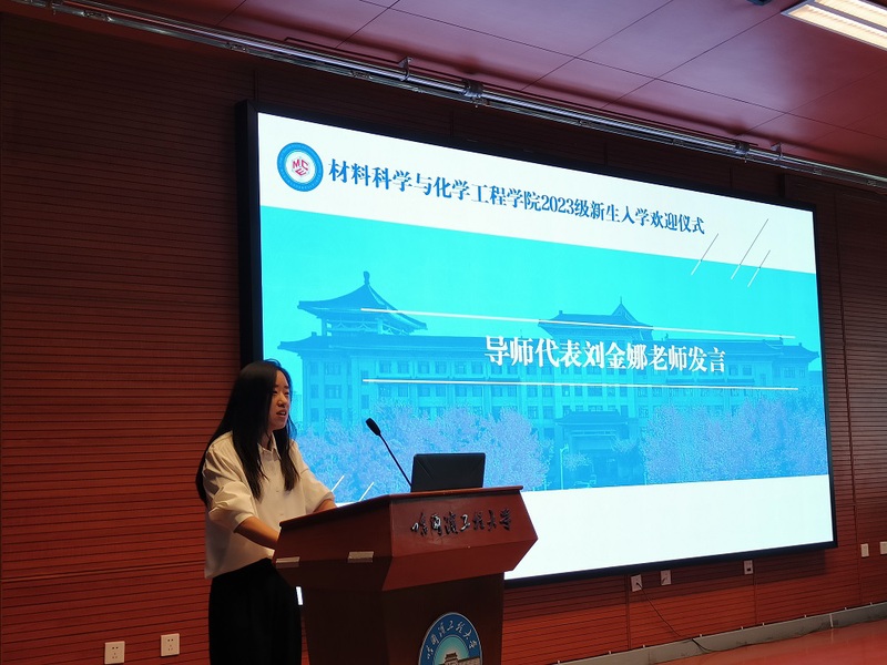 研究生导师代表刘金娜从自己十二年的求学、任教的经验出发,向大家总结了优秀研究生的四个特点,就是要做到四个“自”,一是自知,要善于自我分析,知道自己的优势,充分发挥它;清楚自己的劣势,设法补足它;明确自己的目标,努力实现它。二是自律,要吃得了科研的苦,坐得了冷板凳,从坚持每天阅读一篇文献做起,扎实做好科研学习。三是自强,在科研的道路上,不要自我设限,与老师多沟通,与师兄师姐多交流,持之以恒定能有所突破。四是学会自我接纳,她提醒同学们,遇到困难,别着急否定自己,要相信自己,你的能力足够,用再试一次的勇气提升自己。