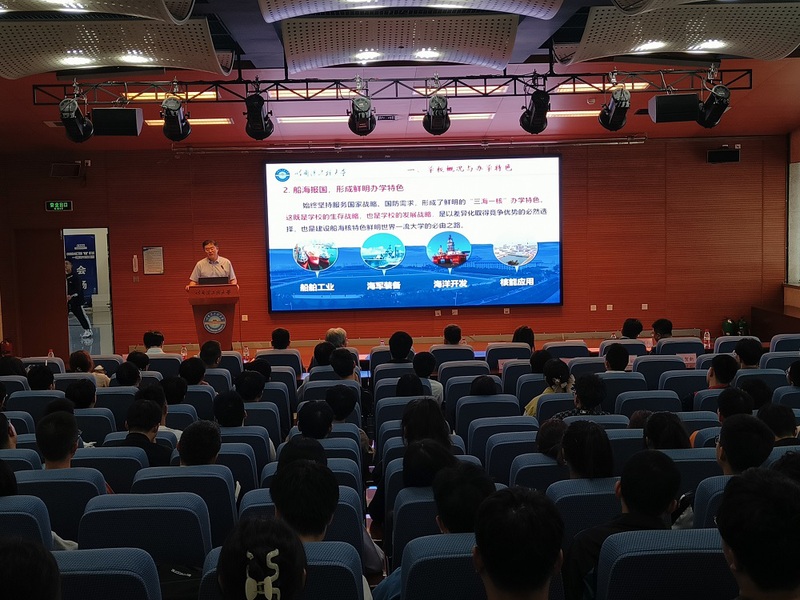 首先,院长杨飘萍为2023级研究生讲授开学第一课。杨飘萍以哈军工精神为切入点,围绕校史介绍了学校从哈军工到哈船院再到哈工程的历史沿革以及使命传承,从学校“三海一核”办学特色,一校四区发展规划向同学们展示了学校“三个第一”的价值追求和“扎根祖国大地办教育”的初心使命。他教育同学们,作为新时代哈工程学子,要继承红色基因,传承哈军工光荣传统。随后,杨飘萍详细介绍了学科专业、师资队伍、科研环境和人才培养等学院概况,让同学们对学院的发展历程也有了深入的了解,他同时将哈尔滨市独具魅力的人文环境推荐给全体新生,希望同学们在提升自己的同时享受生活中的美好。