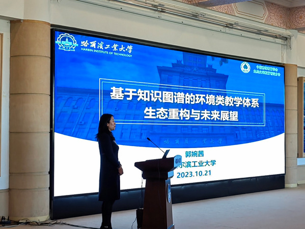 国家级高层次人才、哈尔滨工业大学郭婉茜教授应邀出席本次会议,并做了题为《基于知识图谱的环境类教学体系生态重构与未来展望》的精彩报告,报告提出了如何解决当代教育模式下急需突破的教学“桎梏”问题,并对大数据时代下信息、知识与学科教学的生态重构进行了解读和展望。