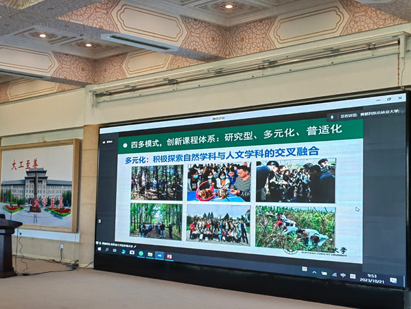黑龙江省政协委员、黑龙江省政府特聘碳汇经济专家、东北林业大学经济管理学院副院长黄颖利教授做了题为《“四多”模式的政产学研协同育人机制创新实践》的线上报告,报告指出了一种多学科交叉、多资源融合、多要素共享、多方位服务相协同的课程思政育人模式。