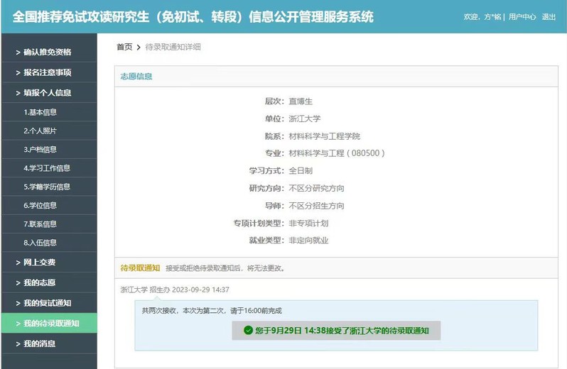 在用心做好学生工作的同时,方子铭勤奋刻苦、精于研学。前六学期学习成绩位列专业第二、综合成绩位列专业第一。他坚持将自身所学与科研实践相结合,积极参与各类创新创业赛事,曾获中国国际大学生创新大赛(2023)国家金奖等国家级奖励8项、省部级奖励9项。在中国国际大学生创新大赛(2023)中,由他担任负责人的项目作为我省唯一项目进入排位赛路演。