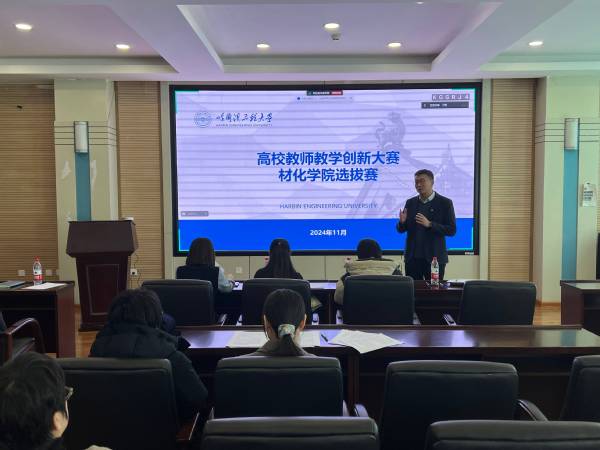 2024年11月20日,Best365官网组织主讲教师在材化楼433会议室开展高校教师教学创新大赛院内选拔赛。学院邀请工程训练中心周莹、材化学院督导董国君、教学改革与教师发展中心常务副主任张贺新、基层学术组织负责人丁鹤担任评委,经基层学术组织选拔推荐教师代表参加院赛试讲。院赛由材化学院副院长李峻青主持。