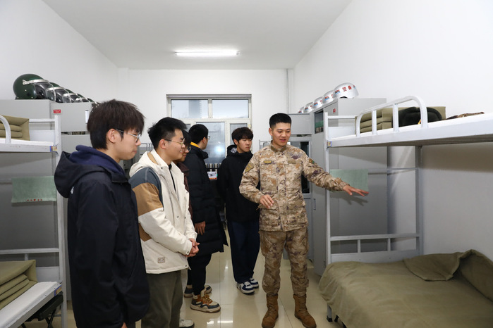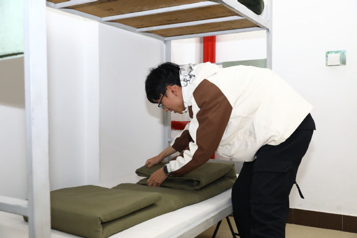 在“军营内务体验”环节,同学们走进了士兵生活区,领悟优良作风的真谛。干净整洁的床铺、整齐摆放的装具、整齐划一的内务设置,处处彰显着军人严谨细致的作风。士兵们耐心地穿梭在同学们中间,从最基础的叠被子开始手把手教学,演示如何将被子的每一个角都折叠得方方正正。在讲解物品摆放时,士兵们细致入微,强调着每一件物品的摆放位置与角度,背后蕴含的是部队严格的纪律要求。同学们个个神情专注,眼睛紧盯着士兵们的一举一动,手中的动作也随之开展,一丝不苟地学习着标准化内务整理的要领。活动结束后,同学们纷纷表示会将在部队中学到的内务整理的标准与规范带回校园,带动周围同学共同加强寝室卫生。材化学院也将通过内务专项检查、日常内务评比、优秀寝室展示等方式,推动学生提升自律意识,提高内务整理水平,营造整洁有序的寝室环境。