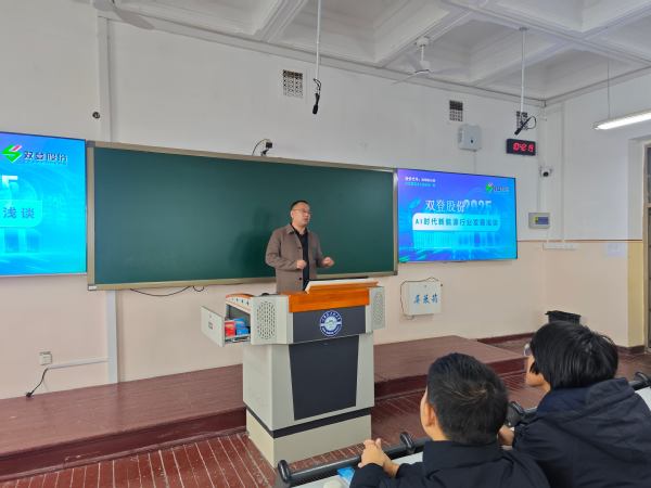 为强化2025级新能源材料与器件专业学生对行业发展前沿动态的认知和了解,拓宽学生专业视野,10月17日上午,学院特邀双登集团股份有限公司技术总监蔡先玉为新能源专业学子带来一场关于“AI时代新能源发展动态”的讲座,从技术迭代到产业布局,为新生勾勒出新能源行业的全景图谱。学院全体2025级新能源材料与器件专业本科生参加,讲座由辅导员阿里木江主持。