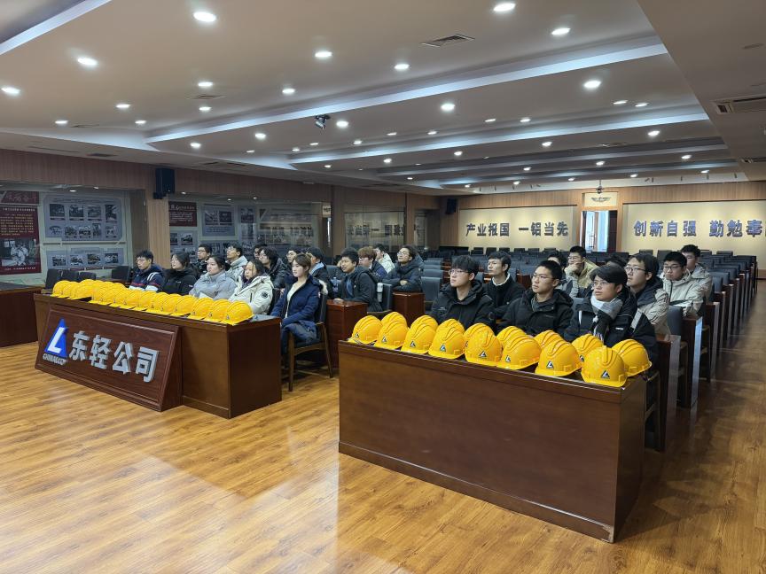 活动伊始,同学们在公司展览馆内追溯东轻的发展历程。从建国初期的工业奠基到如今的高端材料领航者,一件件承载着国家重大工程记忆的展品、一组组彰显技术突破的数据,让同学们直观感受到中国铝加工行业的崛起之路,更深刻理解了“材料强则工业强,工业强则国家强”的深层内涵。随后的安全讲座中,工作人员结合工厂实际案例,详解安全生产规范与防护要点,为后续一线参观筑牢安全防线。