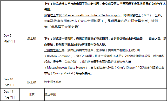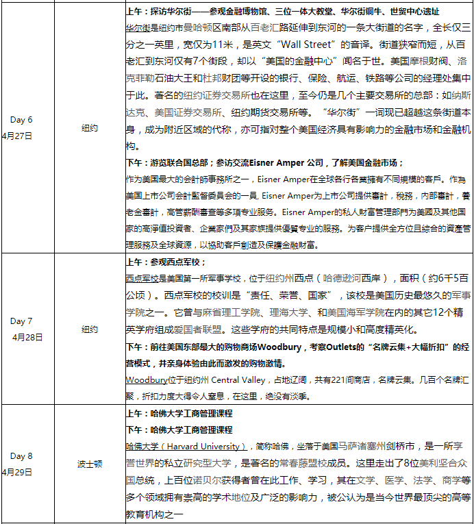 ※ 走遍美国东海岸地标城市:波士顿、纽黑文、纽约、费城、华盛顿,全程深度体验美国东海岸名校文化——哈佛大学、麻省理工、耶鲁大学、西点军校、纽约大学、哥伦比亚大学、宾夕法尼亚沃顿商学院、乔治城大学;
