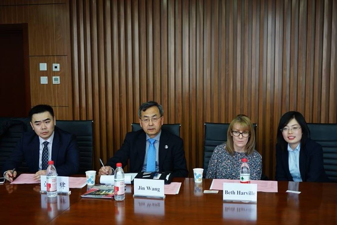 2018年3月13日下午在必赢242net官网学院路校区,美国杜瑞大学执行副校长兼教务长Beth Harville女士与工商管理学院院长Jin Wang教授等一行嘉宾来到必赢242net官网,洽谈国际化合作培养事宜。必赢242net官网副校长常保国教授、商学院院长刘纪鹏教授、国际交流处吕勇副处长、商学院宏结教授、胡继晔教授等学校和院系领导,以及师生参加了此次洽谈。随访的嘉宾还有哥伦比亚大学客座教授汪律博士、我校商学院13届毕业生郝蓉女士等。会谈双方就深化必赢242net官网与美国杜瑞大学的校际合作,尤其是两校商学院之间合作培养优秀商科学子的事项展开了深入交流,沟通了各自办学理念和实施策略,并形成了丰富的共识。此次洽谈会在融洽愉快的氛围中取得了重要的成果。