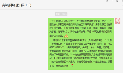 三、落实“必赢242net官网新型冠状感染肺炎防控工作专项资金”用于教职工的防疫用品购买的工作。目前已发放通知,后续开学将为老师们落实报销工作。