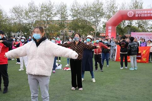 这天秋高气爽,正是适合运动的绝佳时节。领导致辞后,运动会正式开幕。全体参赛教职工的热情被带动了起来,在教练的带领下进行热身运动。