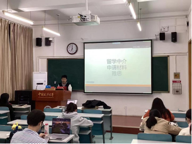 于霁鸣同志分享了留学申请经验。针对不同地域细致分析了费用、学制、学科等特点,他着重分析了是否联系留学中介、申请材料如何准备、雅思要求、心态等申请环节的注意事项。
