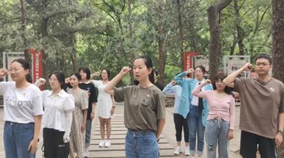 一二·九运动是中国共产党领导的一次大规模学生爱国运动,是抗战动员的运动,是准备思想和干部的运动,是动员全民族的运动,有着重大的历史意义。一二·九运动纪念亭位于植物园樱桃沟尽头,师生们从植物园开始爬山前往纪念亭,踏上了党史学习之旅,沿途参观刻有“保卫华北”字样的大青石以及革命英雄事迹纪念栏。回顾党领导人民群众发动一二·九抗日救亡运动、众志成城抵抗侵略的英勇事迹,共忆革命先烈的红色故事。