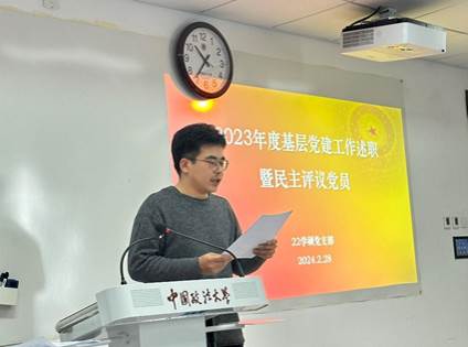 2024年2月28日,商学院22级学硕党支部组织召开了2023年度基层党建工作述职暨民主评议党员活动。会议由党支部书记张国栋主持,支部全体党员及入党积极分子参会。