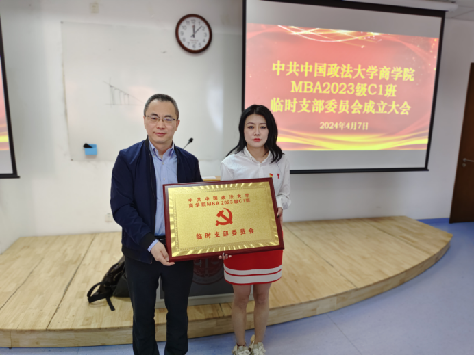 为加强党的基层组织建设,更好地发挥党组织的政治核心和党支部的战斗堡垒作用,2024年4月7日,商学院MBA2023级C1班临时党支部成立暨授牌仪式举行。