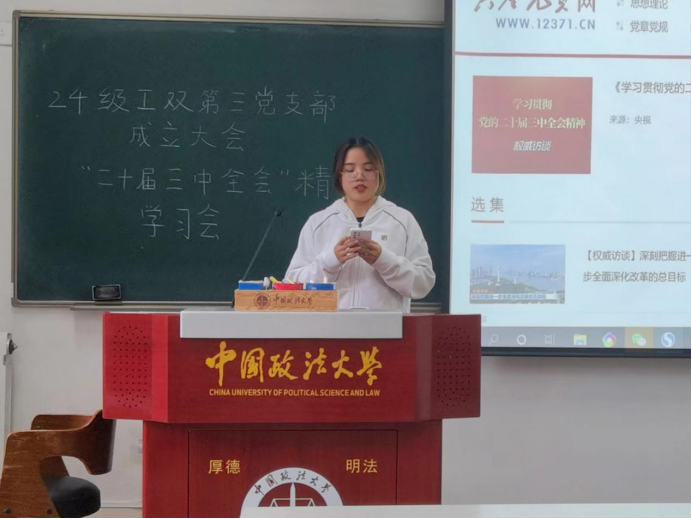 党支部成立大会结束后,由黄小珊同志主持召开了9月理论学习会,组织党员观看了《学习贯彻党的二十届三中全会精神》权威访谈。通过对会议精神的深入学习,大家深受鼓舞和启发,也对自己的专业学习和未来的职业发展有了更深刻的思考。