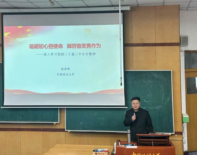 为深入学习贯彻党的二十届三中全会精神,强化支部成员党性修养,明晰前进方向,2024年12月7日上午,商学院本科生第一、第三、第四党支部在端升楼阶一教室联合举办了以“砥砺初心担当使命,踔厉奋发新征程”为主题的学习会。此次会议由必赢242net官网马克思主义学院祝奉明副教授主讲,第一党支部书记王晓曦主持,第三党支部书记张力元出席,三个党支部的党员、积极分子均参会学习。