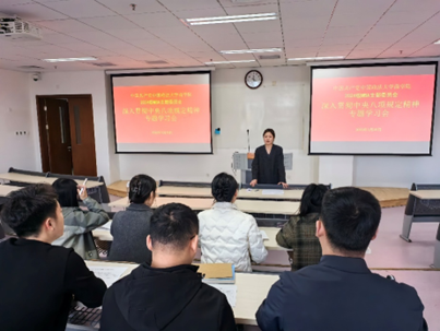 为深入学习贯彻习近平总书记关于党的作风建设的重要论述精神,深入贯彻中央八项规定精神学习教育的部署要求,2025年3月28日下午,商学院24级MBA党支部在综合楼0502教室召开专题学习会,组织全体党员进行集中理论学习,会议由党支部书记彭婉颖主持。