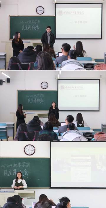 在校团委的统一领导和商学院分团委的全面指导下,2016级成思危现代金融菁英班团支部和工商管理1502班团支部于2017-2017年度秋季学期开始了加强学风建设与民主建设以及优化宣传方式的新型团支部建设,由商学院学委会审核部进行监督。根据建设方案,两个支部分别于2017年12月7日及8日在端升407教室举办民主评议会,旨在保证团组织的公平民主,保证团支部先进性和拥有持续活力。