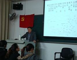 李晓老师首先介绍了学生党员应了解的重大历史事件,主要讲解了建党过程、国内革命战争、抗日战争、解放战争等各个历史时期党的理论创新,阐述了我党艰难的奋斗历程,然后他结合当下的社会经济形势,阐述了学生党员应明确的现实问题,将历史与现实相结合的典范。