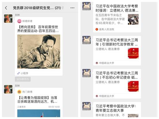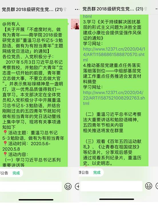 为纪念“五四运动”101周年,传承“五四运动”光荣传统,商学院2018级普研党支部于5月6日至8日开展“不虚度时光,做有为青年——“重温习近平总书记5˙3讲话和勉励语,做有为有担当青年”主题网络党日活动,坚定党员理想信念,加强党员学习意识,打造富有生机活力、先锋模范作用的党员队伍。